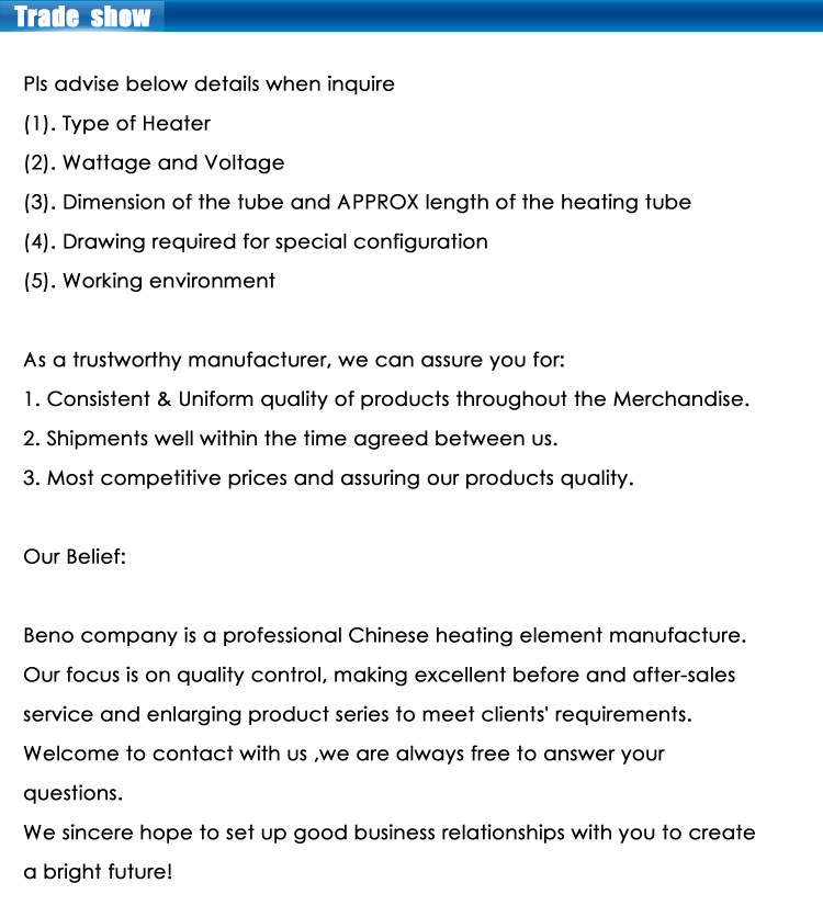 8.Air tubular heater wattage : ≥ 1w-5w/cm2